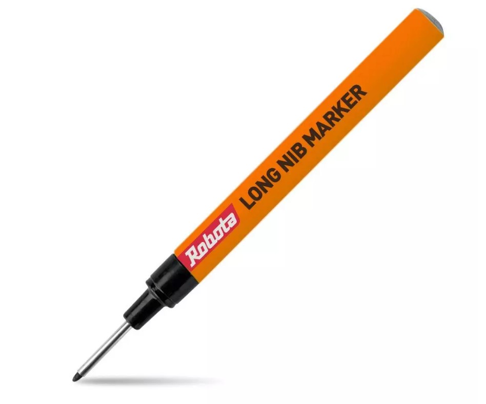 Ohut ja pitkäkärkinen musta tussi esimerkiksi porausreikien merkintään. Todellinen metallimiehen unelma, koska merkintä pysyy lähes pinnalla kuin pinnalla.