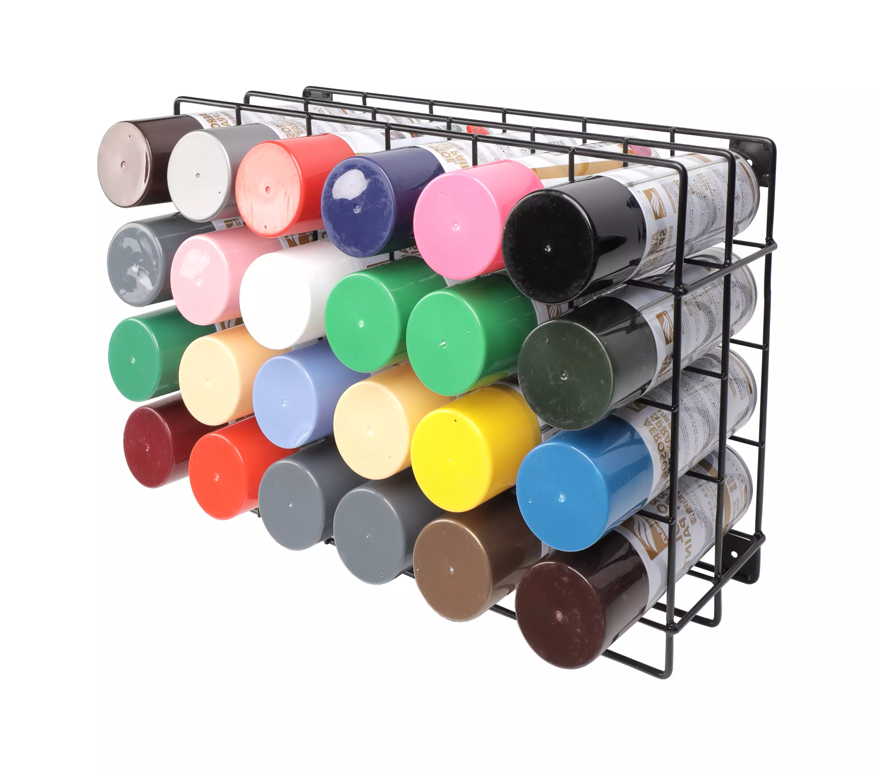 Vahvasta pulverimaalatusta teräksestä valmistettu käytännöllinen teline spraymaalipulloille , muille ponnekaasupulloille ja muille pulloille.Telineessä pullot pysyvät aina järjestyksessä ja jokainen pullo on aina kätesi ulottuvilla. Vältä turha pullojen ja maalien etsiminen tehostamalla työskentelyä ja pitämällä tavarat järjestyksessä laadukkailla Robotan valmistamilla säilytysratkaisuilla.
