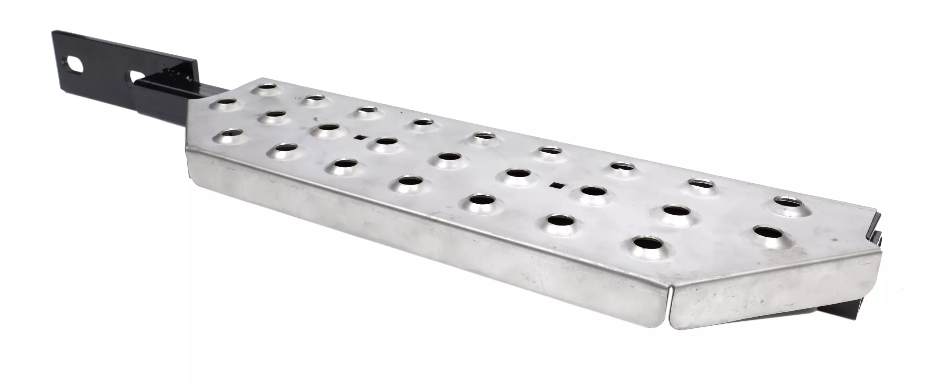 Pakettiauton astinlauta vetokoukkukiinnityksellä. Mahdollisuus vaihtaa kätisyys molemmille puolille sopivaksi. Käy malleihin joissa vetokoukku kiinnitetty kahdella pultilla.